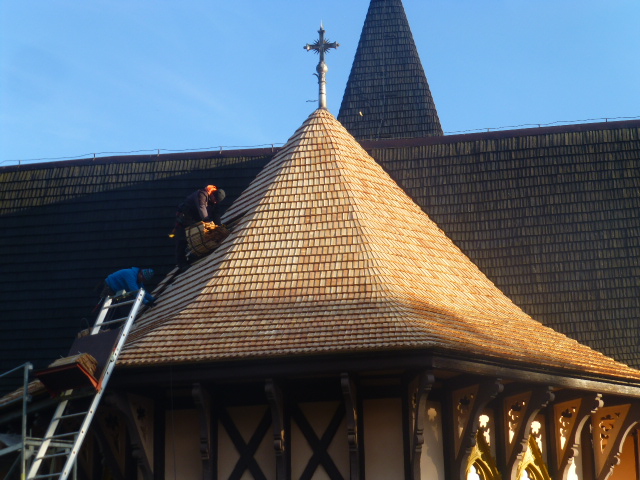 Pokládka šindľov - NKP Kaplnka, B. Belá