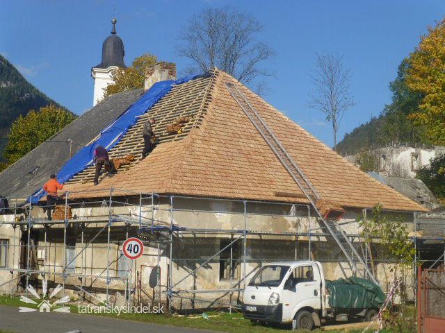 Pokládka šindľov - NKP Kaplnka, B. Belá