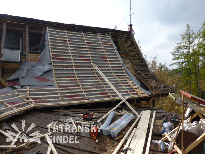 Vila Kamzík - pokládka šindlov v S. Smokovci